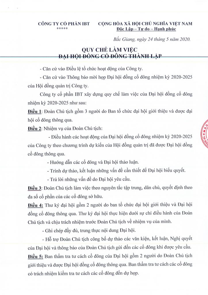 Thông báo họp ĐHCĐ QUY CHẾ LÀM VIỆC TẠI ĐẠI HỘI ĐỒNG CỔ ĐÔNG Posted on 14/05/202014/05/2020 by admin 14 Th5 QUY CHẾ LÀM VIỆC TẠI ĐẠI HỘI ĐỒNG CỔ ĐÔNG TỜ TRÌNH LỰA CHỌN ĐƠN VỊ KIỂM TOÁN ĐIỀU LỆ TỔ CHỨC VÀ HOẠT ĐỘNG