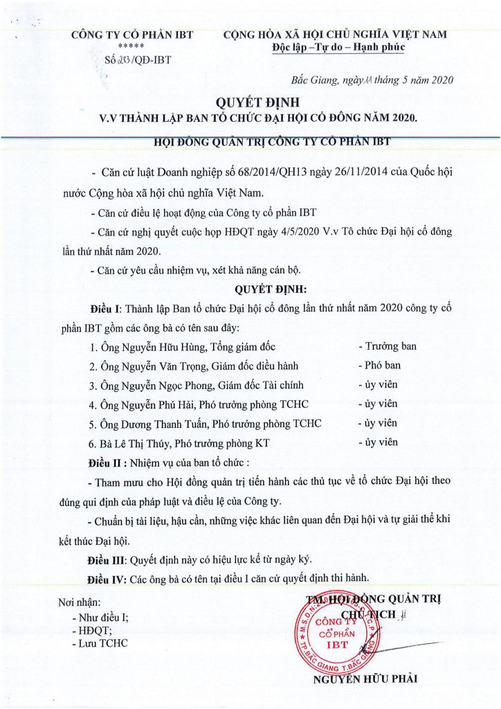 NGÀY 11 THÁNG 05 NĂM 2020 BAN LÃNH ĐẠO CÔNG TY ĐÃ CÓ QUYẾT ĐỊNH THÀNH LẬN BAN TỔ CHỨC VÀ PHÂN CÔNG NHIỆM VỤ TẠI LẦN HỌP ĐẠI HỘI ĐỒNG CỔ ĐÔNG LẦN 1 NĂM 2020