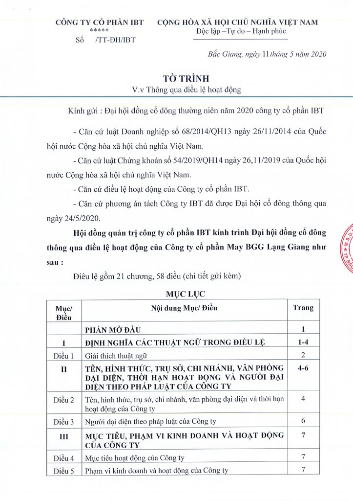Thông báo họp ĐHCĐ TỜ TRÌNH THÔNG QUA ĐIỀU LỆ HOẠT ĐỘNG Posted on 14/05/202014/05/2020 by admin 14 Th5 Tờ trình thông qua điều lệ hoạt động QUYẾT ĐỊNH THÀNH LẬP BAN TỔ CHỨC ĐẠI HỘI ĐỒNG CỔ ĐÔNG LẦN 1 NĂM 2020 TỜ TRÌNH LỰA CHỌN ĐƠN VỊ KIỂM TOÁN